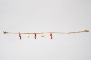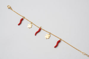 This bracelet is perfect for those looking for an accessory that combines style and symbolism. Worn alone or combined with other jewels, it becomes a distinctive element that tells a personal story. With its unique design and combination of high-quality materials, this four-leaf clover and cornicello charm bracelet is an incredible statement of elegance and luck.