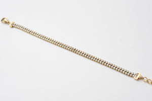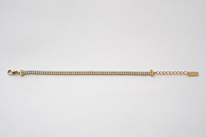 The distinctive feature of this bracelet is the white zircons set along its length. The white color of the cubic zirconia adds a vibrant and charming element to the design, creating a stunning contrast with the golden tone of the gold-plated steel. The regular arrangement of the zircons follows the classic "tennis" style, helping to create a harmonious and luminous look.