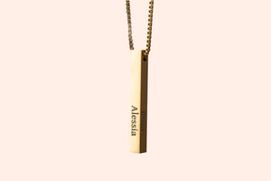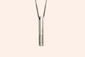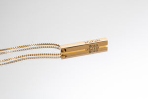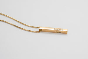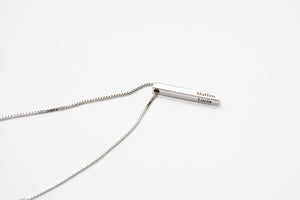 You can have one or all sides engraved depending on what you want to engrave. The simple and modern design is completed by a box chain which makes it the perfect personalized necklace for your partner or friend...