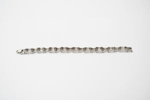 La struttura del bracciale simula una catena, con maglie interconnesse che formano un design fluido e armonioso. Questo stile di bracciale è noto per la sua versatilità, in grado di adattarsi sia a look casual che a outfit più formali.
