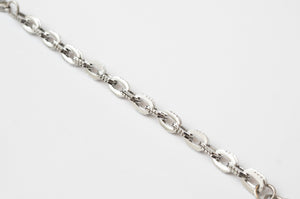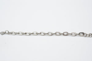 La catenina semplice è composta da maglie sottili e compatte, che conferiscono al bracciale un aspetto leggero e delicato. La scelta dell'acciaio o dell'acciaio bagnato in oro aggiunge una nota di modernità e versatilità al gioiello, rendendolo adatto a essere indossato da solo per un look minimalista o abbinato ad altri bracciali per uno stile stratificato.