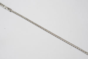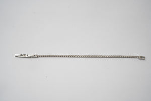 La caratteristica distintiva di questo bracciale sono gli zirconi bianchi incastonati lungo la sua lunghezza. Il colore bianco degli zirconi aggiunge un elemento vivace e affascinante al design, creando un contrasto straordinario con il tono dell'acciaio. La disposizione regolare degli zirconi segue il classico stile "tennis", contribuendo a creare un look armonioso e luminoso.