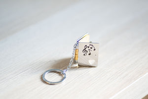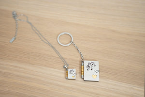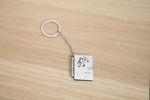 Questa collana unica e affascinante ed il portachiavi sono realizzati in resistente acciaio, con un design ispirato a un piccolo libro apribile. Sul ciondolo è inciso il simbolo delle note musicali ed è impreziosito da dettagli color oro, rendendolo un accessorio sofisticato e raffinato.